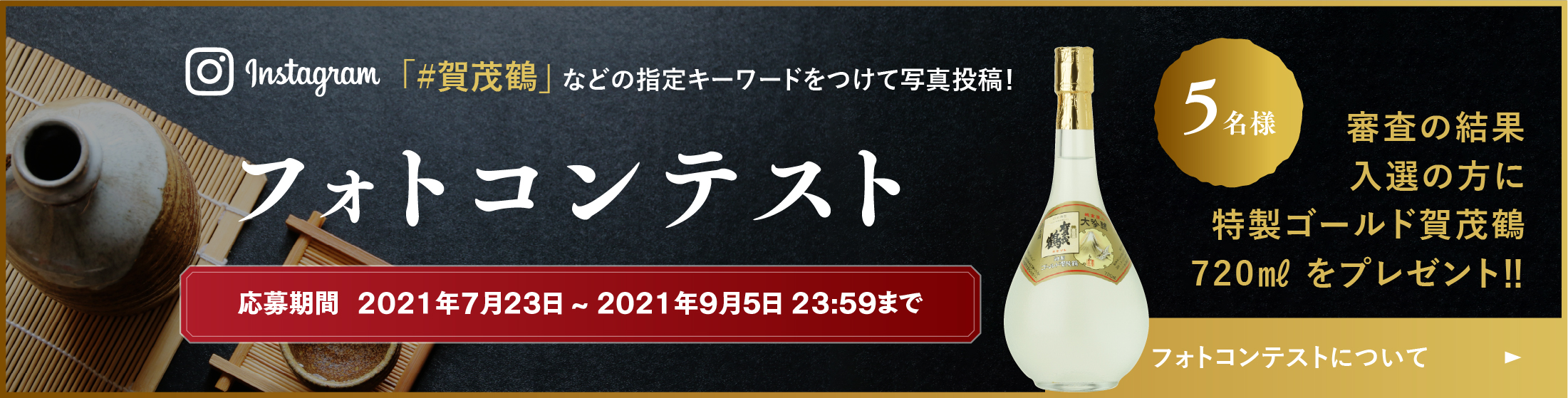 | 応募資格 | 賀茂鶴酒造 公式Instagram(@kamotsuru_sake_brewing)のフォロワーで、応募規約にご同意いただいた方。 |
