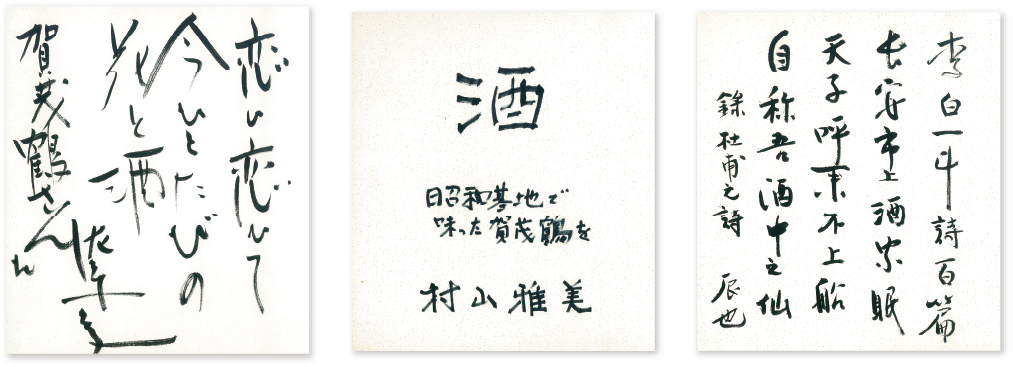 右/歴史家、奈良本辰也立命館大学教授より/杜甫の七言絶句を引用され、賀茂鶴を愛でられた