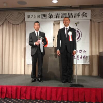 このたび、西条酒造協会主催「西条清酒品評会」が3月18日(水)に開催され、弊社総杜氏・友安浩司が最優秀賞(第1位)を受賞いたしました。